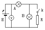 如图所示,电动势为E、内阻为r的电源与两个灯泡A、B及一个电阻R、理想电压表相接,开始时开关k断开,现在闭合开关k,下列表述正确的是