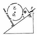 如图所示,斜面上固定有一与斜面垂直的挡板,另有一截面为 圆的光滑柱状物体甲放置于斜面上,半径与甲相等的光滑球乙被夹在甲与挡板之间,没有与斜面接触而处于静止状态。现在从球心O1处对甲施加一平行于斜面向下的力F,使甲沿斜面方向缓慢向下移动,移动过程中甲、乙始终保持平衡。设乙对挡板的压力大小为F1,甲对斜面的压力大小为F2,在此过
