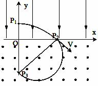 如图所示,在y>0的空间中存在匀强电场,场强沿y轴负方向;在y<0的空间中,存在匀强磁场,磁场方向垂直xy平面(纸面)向里.一电量为q、质量为m的带正电的运动粒子,经过y轴上y=h处的点P1时速率为V0,方向沿x轴正方向;然后,经过x轴上x=2h处的P2点进入磁场,并经过y轴上y=-2h处的P3点.不计重力.求: