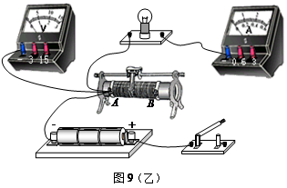 ②开关S闭合之前,图9(乙)中滑动变阻器的滑片应该放在_______(选填“A端”、“B端”或“AB正中间”)。