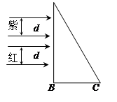 如图所示,截面为ABC的玻璃直角三棱镜放置在空气中,宽度均为d的紫、红两束光垂直照射三棱镜的一个直角边AB,在三棱镜的另一侧放置一平行于AB边的光屏,屏的距离远近可调,在屏上出现紫、红两条光带,可能是
