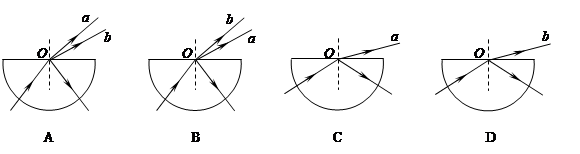 有一束复色光中含有两种单色光,在真空中a光的波长大于b光的波长。若让此复色光通过半圆形玻璃砖,经过圆心O射向空气,则下列四个光路图中符合实际情况的有: