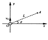 如图所示,在真空中有一与x轴平行的匀强电场,一电子由坐标原点O处以速度v0沿y轴正方向射入电场,在运动中该电子通过位于xoy平面内的A点,A点与原点O相距L,OA与x轴方向的夹角为θ,已知电子电量q =-1.6×10-19C,电子质量m = 9×10-31kg,初速度v0 = 1×107m/s,O与A间距L = 10cm、θ= 30º。求匀强电场的场强大小和方向。