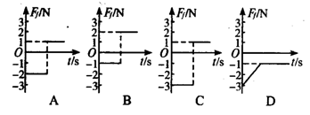 物体A的质量为1Kg,置于水平地面上,物体与地面的动摩擦因数为μ=0.2。从t=0开始物体以一定初速度v0向右滑行的同时,受到一个水平向左的恒力F=1N的作用,则能反映物体受到的摩擦力Ff随时间变化的图像可能为(取向右为正方向,g取10m/s2)