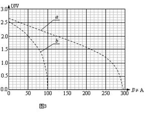 (3)实验二:减小实验一中光的强度,重复实验,测得U-I曲线b,见图3.当滑动变阻器的电阻为某值时,若实验一中的路端电压为1.5V。则实验二中外电路消耗的电功率为 mW(计算结果保留两位有效数字)。