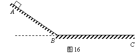 如图16所示,光滑斜面与水平面在B点平滑连接,质量为0.20kg的物体从斜面上的A点由静止开始下滑,经过B点后进入水平面(设经过B点前后速度大小不变),最后停在水平面上的C点。每隔0.20s通过速度传感器测量物体的瞬时速度,下表给出了部分测量数据。取g=10m/s2。