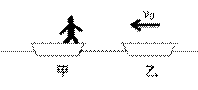 如图,质量为m的小船甲在静止在水面上,一质量为m/3的人站在船尾。另一相同小船乙以速率v0从后方驶来,为避免两船相撞,人从船尾以相对小船甲的速率v水平向后跃到乙船,求速率v至少为多大才能避免两船相撞。