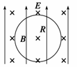如图所示,在相互垂直的匀强电场和匀强磁场中,电荷量为q的液滴在竖直面内做半径为R的匀速圆周运动,已知电场强度为E,磁感应强度为B,则油滴的质量和环绕速度分别为( )
