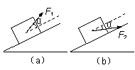 如图(a)、(b)所示,同一物体分别在外力F1、F2作用下均能静止在斜面上,F1、F2大小相等,方向与斜面夹角均为α,图(a)中物体与斜面间的弹力大小为N1、摩擦力大小为f1,图(b)中物体与斜面间的弹力大小为N2、摩擦力大小为f2,则下列判断正确的( )