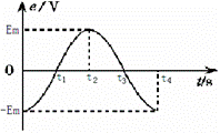 一矩形线圈,绕垂直于匀强磁场并位于线圈平面内的固定轴转动,线圈中的感应电动势e随时间t的变化如图所示。下面说法中正确的是