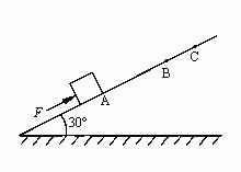 如图所示,小木块在沿斜面向上的恒定外力F作用下,从A点由静止开始作匀加速运动,前进了0.45m抵达B点时,立即撤去外力。此后小木块又前进0.15m到达C点,速度为零。已知木块与斜面动摩擦因数,木块质量m=1kg。