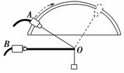 如图所示,某小组同学利用DIS实验装置研究支架上力的分解.A、B为两个相同的双向力传感器,该型号传感器在受到拉力时读数为正,受到压力时读数为负.A连接质量不计的细绳,可沿固定的板做圆弧形移动.B固定不动,通过光滑铰链连接长0.3 m的杆.将细绳连接在杆右端O点构成支架.保持杆在水平方向,按如下步骤操作: