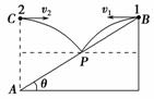 如图所示,长度为L=6m、倾角θ=30°的斜面AB,在斜面顶端B向左水平抛出小球1、同时在底端A正上方某高度处水平向右抛出小球2,小球2垂直撞在斜面上的位置P,小球1也同时落在P点,则两球平抛下落的高度为__________,下落的时间为_______。(v1、v2为未知量)