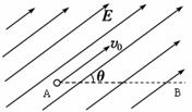 如图所示,匀强电场方向与水平线间夹角θ=37°方向斜向右上方,电场强度为E。质量为m的小球带正电,以初速度v0=16m/s从A点开始运动,初速度方向与电场方向一致,其中。经过一段时间t,小球经过与A点在同一水平线上的B点。求