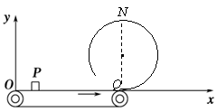 如图所示,x轴与水平传送带重合,坐标原点O在传送带的左端,传送带长L=8m,匀速运动的速度v0=5m/s。一质量m=1kg的小物块轻轻放在传送带上xP=2m的P点,小物块随传送带运动到Q点后恰好能冲上光滑圆弧轨道的最高点N点。小物块与传送带间的动摩擦因数μ=0.5,重力加速度g=10 m/s2。求: