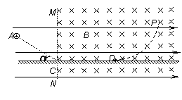 如图,空间内存在水平向右的匀强电场,在虚线MN的右侧有垂直纸面向里、磁感应强度为B的匀强磁场,一质量为m、带电荷量为+q的小颗粒自A点由静止开始运动,刚好沿直线运动至光滑绝缘的水平面C点,与水平面碰撞的瞬间小颗粒的竖直分速度立即减为零,而水平分速度不变,小颗粒运动至D处刚好离开水平面,然后沿图示曲线DP轨迹运动,AC与水平面夹角α = 30°,重力加速度为g,求: