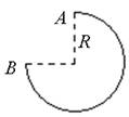 一质点在半径为R的圆周上从A处沿顺时针运动到B处,则它通过的路程、位移大小分别是![]()