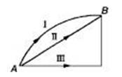 如图所示,一物体沿三条不同的路径由A运动到B,下列关于它们的位移的说法中正确的是( )![]()