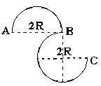 如图所示:物体沿两个半径为R的圆弧由A到C,则它的位移和路程分别为: ![]()