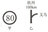 为了使公路交通有序、安全,路旁立了许多交通标志。如图所示,甲图是限速标志(白底、红圈、黑字),表示允许行驶的最大速度是80 km/h;乙图是路线指示标志,表示到杭州还有l0km。上述两个数据的物理意义是 ( )