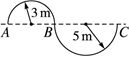 如图所示,是一位晨练者每天早晨进行锻炼时的行走路线,从A点出发,沿半径分别为3 m和5 m的半圆经B点到达C点,则他的位移和路程分别为( )![]()