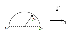 如图所示,某质点沿半径为r的半圆弧,由a点运动到b点,则它通过的位移和路程分别是( ) ![]()