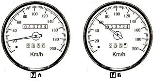 如图所示是汽车中的速度计,某同学在汽车中观察速度计指针位置的变化.开始时指针指示在如图A所示的位置,经过7s后指针指示在如图B所示位置,若汽车做匀变速直线运动,那么它的加速度约为![]()