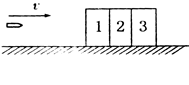 如图 所示,在水平面上固定着三个完全相同的木块,一子弹以水平速度v射入木块,若子弹在木块中做匀减速直线运动,当穿透第三个木块时速度恰好为零,则子弹依次射入每个木块时的速度比和穿过每个木块所用的时间比分别为( )![]()