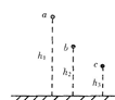 如图所示,在一个桌面上方有三个金属小球a、b、c,离桌面高度分别为h1:h2:h3=3:2:1.若先后顺次释放a、b、c,三球刚好同时落到桌面上,不计空气阻力,则( )![]()