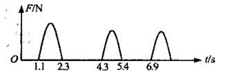 2008年北京奥运会上何雯娜夺得中国首枚奥运会女子蹦床金牌。为了测量运动员跃起的高度,可在弹性网上安装压力传感器,利用传感器记录运动员运动过程中对弹性网的压力,并由计算机作出压力-时间图象,如图所示,运动员在空中运动时可视为质点,则可求运动员跃起的最大高度为(g取10m/s2)( )![]()