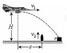 ,地面拦截系统同时以初速度v2竖直向上发射一颗炮弹拦截(炮弹运动过程看作竖直上抛),设此时拦截系统与飞机的水平距离为s,若拦截成功,不计空气阻力,则v1、v2的关系应满足( )![]()