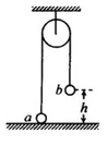 如图所示,一根很长、且不可伸长的柔软轻绳跨过光滑定滑轮,绳两端各系一个小球a和b。a球质量为m,静置于地面;b球质量为4m , 用手托住,高度为h,此时轻绳刚好拉紧。从静止开始释放b后,a能够达到的最大高度为![]()