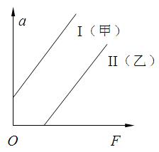 在“探究加速度与力、质量的关系”这一实验中甲乙两位同学根据实验数据画出的小车的加速度a和小车所受拉力F的图像分别为图中的直线Ⅰ和直线Ⅱ,直线Ⅰ、Ⅱ在纵轴或横轴上的截距较大,明显超出了误差范围,下面给出了关于形成这种情况原因的四种解释,其中可能正确的是 ( )![]()