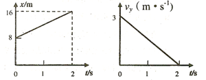平面内做曲线运动,从t=0时刻起,在x方向的位移图象和y方向的速度图象如图所示,则![]()