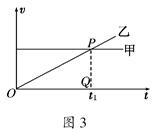甲、乙两车在公路上沿同一方向做直线运动,它们的v-t图象如图3所示.两图象在t=t1时相交于P点,P在横轴上的投影为Q,△OPQ的面积为S.在t=0时刻,乙车在甲车前面,相距为d.已知此后两车相遇两次,且第一次相遇的时刻为t′,则下面四组t′和d的组合可能的是 ( )![]()