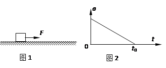 如图1所示,一个物体放在粗糙的水平地面上。从t=0时刻起,物体在水平力F作用下由静止开始做直线运动。在0到t0时间内物体的加速度a随时间t的变化规律如图2所示。已知物体与地面间的动摩擦因数处处相等。则![]()