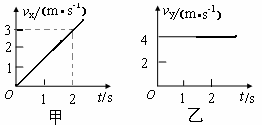 质量为2kg的质点在水平面内做曲线运动,已知互相垂直的x轴和y轴方向上的速度图象分别如图甲和乙所示。下列说法正确的是 ( )![]()