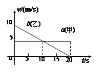 甲乙两辆汽车在平直的公路上沿同一方向做直线运动,t=0时刻同时经过公路旁的同一个路标。在描述两车运动的v-t图中(如图),直线a、b分别描述了甲乙两车在0-20 s的运动情况。关于两车之间的位置关系,下列说法正确的是