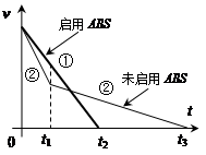 某汽车在启用ABS刹车系统和不启用该刹车系统紧急刹车时,其车速与时间的变化关系分别如图中的①、②图线所示.由图可知,启用ABS后![]()