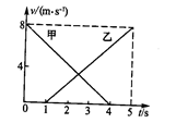 如图所示为甲、乙两物体从同一地点沿直线向同一方向运动的v – t图象,![]()