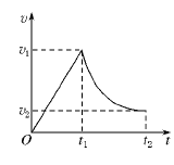 在军事演习中,某空降兵从飞机上跳下,先做自由落体运动,在t1时刻,速度达较大值v1时打开降落伞,做减速运动,t2时刻以较小速度v2着地.他的速度图象如图所示.下列关于该空降兵在0~t1或t1~t2时间内的平均速度[AKv-]的结论正确的是( )![]()