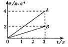 如图为两个物体A和B在同一直线上沿同一方向同时作匀加速运动的v – t图线。已知在3s末两个物体在途中相遇,则物体的出发点的关系是![]()