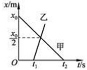 如图所示为甲、乙两物体相对于同一参考系的x-t图象,下面说法正确的是( )。![]()