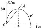 右图是甲、乙两物体在同一直线上运动的(位移)s—t(时间)图象,以甲的出发点为原点,出发时间为计时起点,则( )![]()