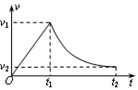 在军事演习中,某空降兵从飞机上跳下,先做自由落体运动,在t1时刻,速度达较大值v1时打开降落伞,做减速运动,在t2时刻以较小速度v2着地。他的速度图像如图所示。下列关于该空降兵在0~t1或t1~t2时间内的的平均速度