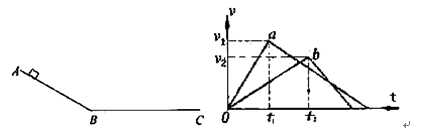 如图所示,质量相等的a、b两物体,从斜面上的同一位置A由静止下滑,经B点在水平面上滑行一段距离后停下。不计经过B点时的能量损失,用传感器采集到它们的速度——时间图象,下列说法正确的是( )![]()