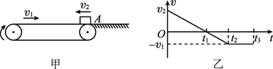 如图甲所示,绷紧的水平传送带始终以恒定速率v1运行.初速度大小为v2的小物块从与传送带等高的光滑水平地面上的A处滑上传送带.若从小物块滑上传送带开始计时,小物块在传送带上运动的v-t图象(以地面为参考系)如图乙所示.已知v2>v1,则( )![]()