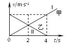 甲、乙两质点从同一地点出发沿同一直线运动,它们的速度(v-t)图象分别由图中直线I和Ⅱ表示,则两质点( )![]()