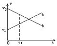 甲和乙两个物体在同一直线上运动, 它们的v-t图像分别如图中的a和b所示. 在t1时刻( )![]()