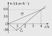 t=0时,甲、乙两汽车从相距70 km的两地开始相向行驶,它们的v-t图象如图所示.忽略汽车掉头所需的时间,下列对汽车运动状况的描述正确的是![]()